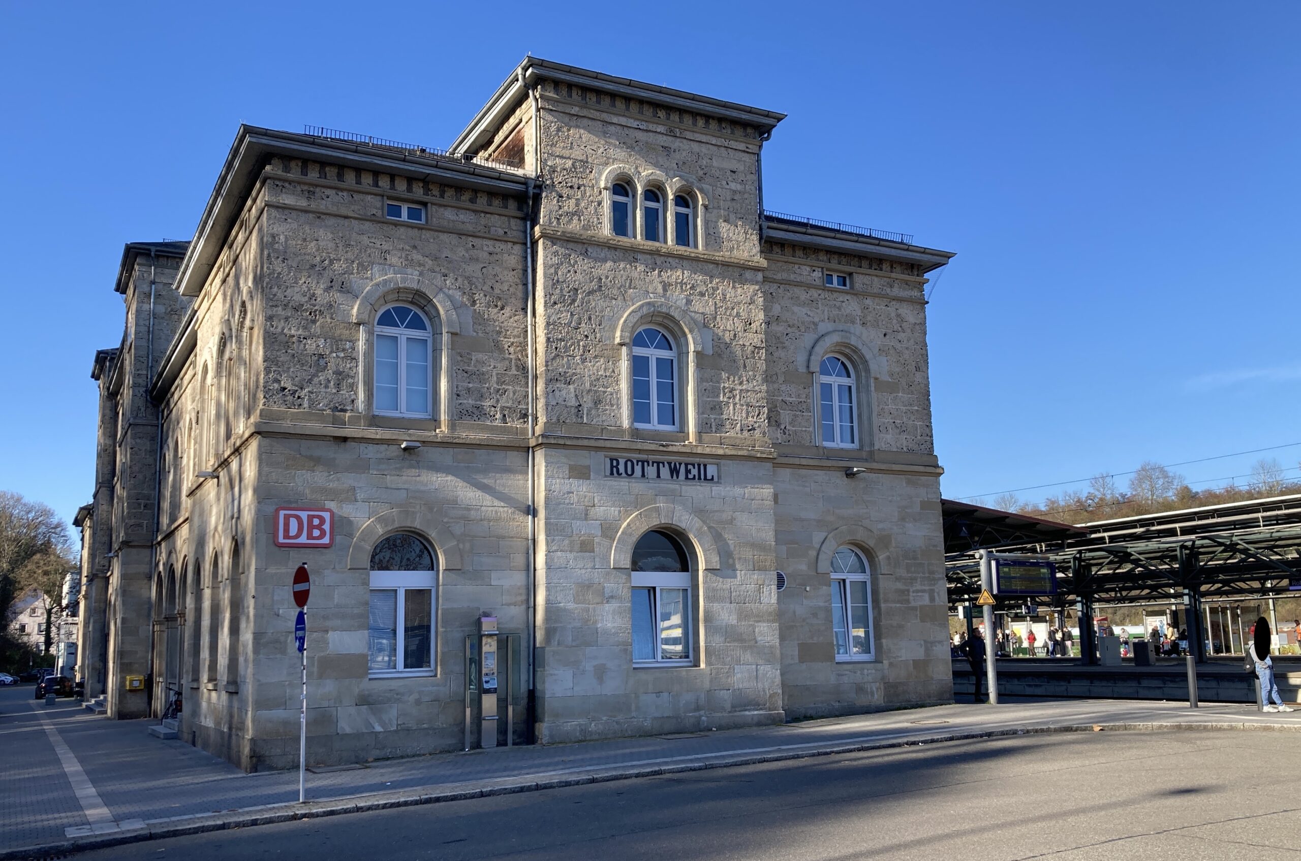 Das historische Bahnhofsgebäude von Rottweil, eröffnet im Jahr 1868, gehört zu den wichtigsten Verkehrsknotenpunkten der Region. Es vereint Geschichte, Architektur und Mobilität und bietet Reisenden sowohl Regional- als auch Fernverkehrsverbindungen.